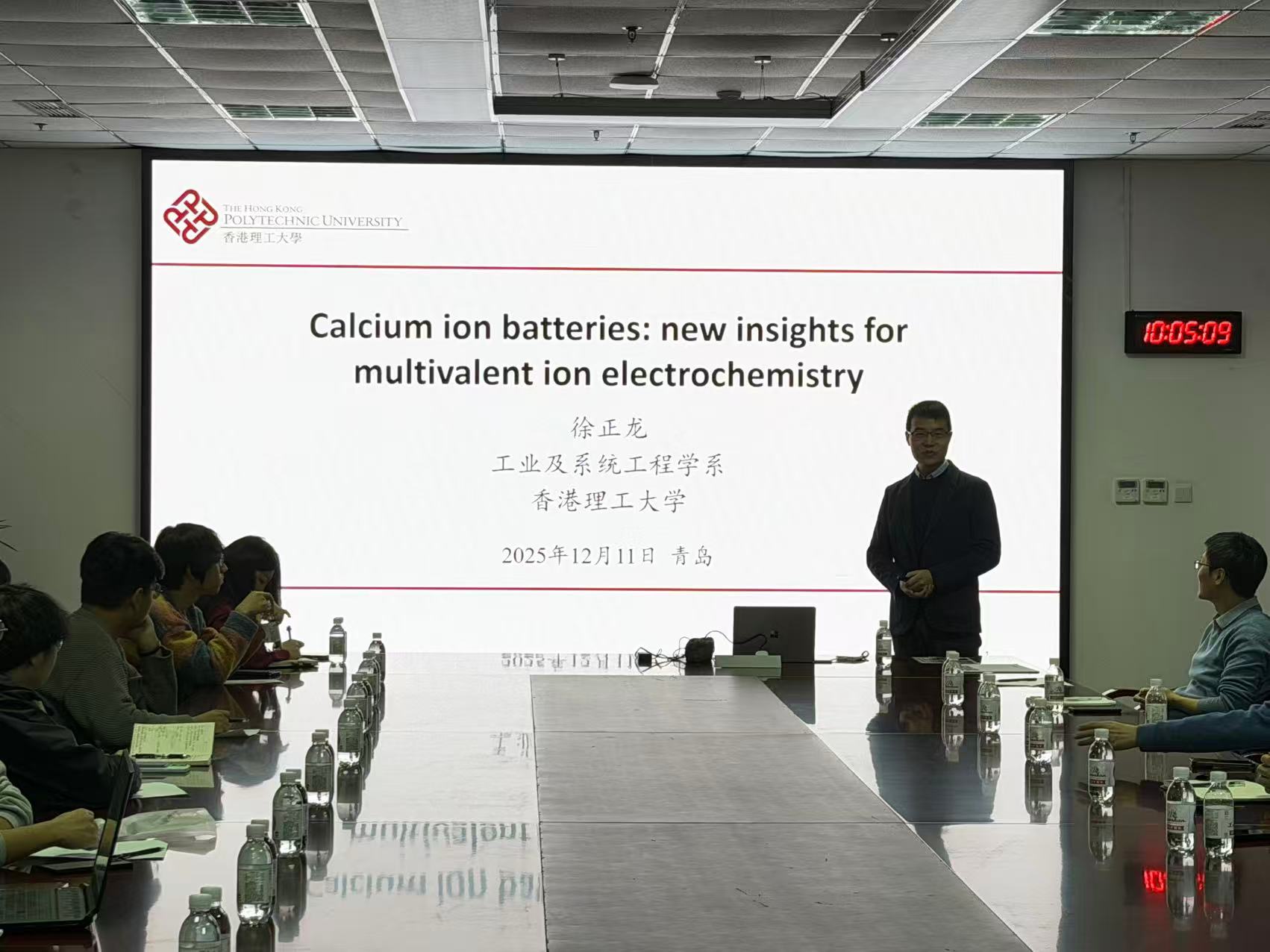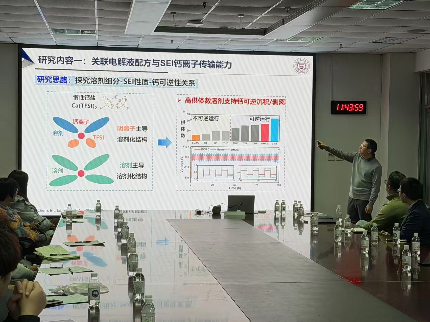 近日,香港理工大学徐正龙副教授、同济大学潘争辉研究员及南京理工大学侯振教授应邀到我研究组进行访问交流。交流期间,徐正龙副教授作了题为“Calcium ion batteries: new insight in multivalent metal ion electrochemistry”的学术报告,潘争辉研究员以“二价离子电池界面设计:无产气水系锌电”为题进行分享,侯振教授则围绕“钙金属电池电解液设计及界面调控”展开报告。
