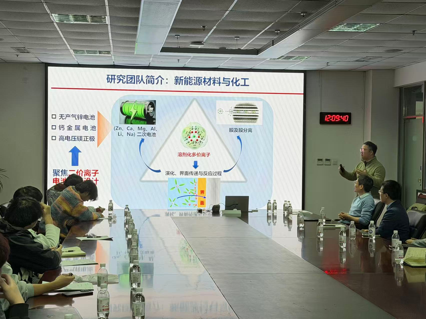 与会人员围绕报告内容,就钙电池与锌电池体系中的正负极材料关键问题及最新进展进行了深入交流与探讨。随后,三位专家参观了实验室,并就未来合作的可能性进行了务实讨论。
